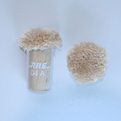 Showcasing a warm beige shade, ARS 04 A Viscose displays finely packed fibers with a smooth, plush texture and a subtle natural sheen. The dense pom highlights excellent color consistency and softness, making it ideal for premium carpet and high-end textile applications.