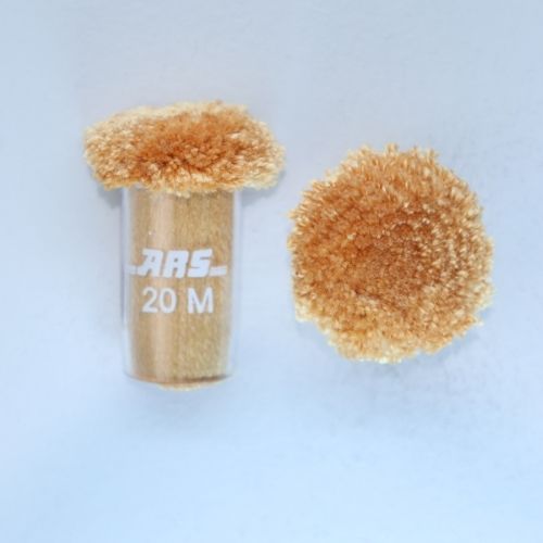 This professional viscose pom features a warm tan shade perfect for luxury rug manufacturing. We use premium tufted fibers to provide a tangible reference with a silk-like luster. Additionally, the transparent sleeve allows you to identify the ARS 20 M code instantly. This tool ensures color consistency and improves communication with your production team.